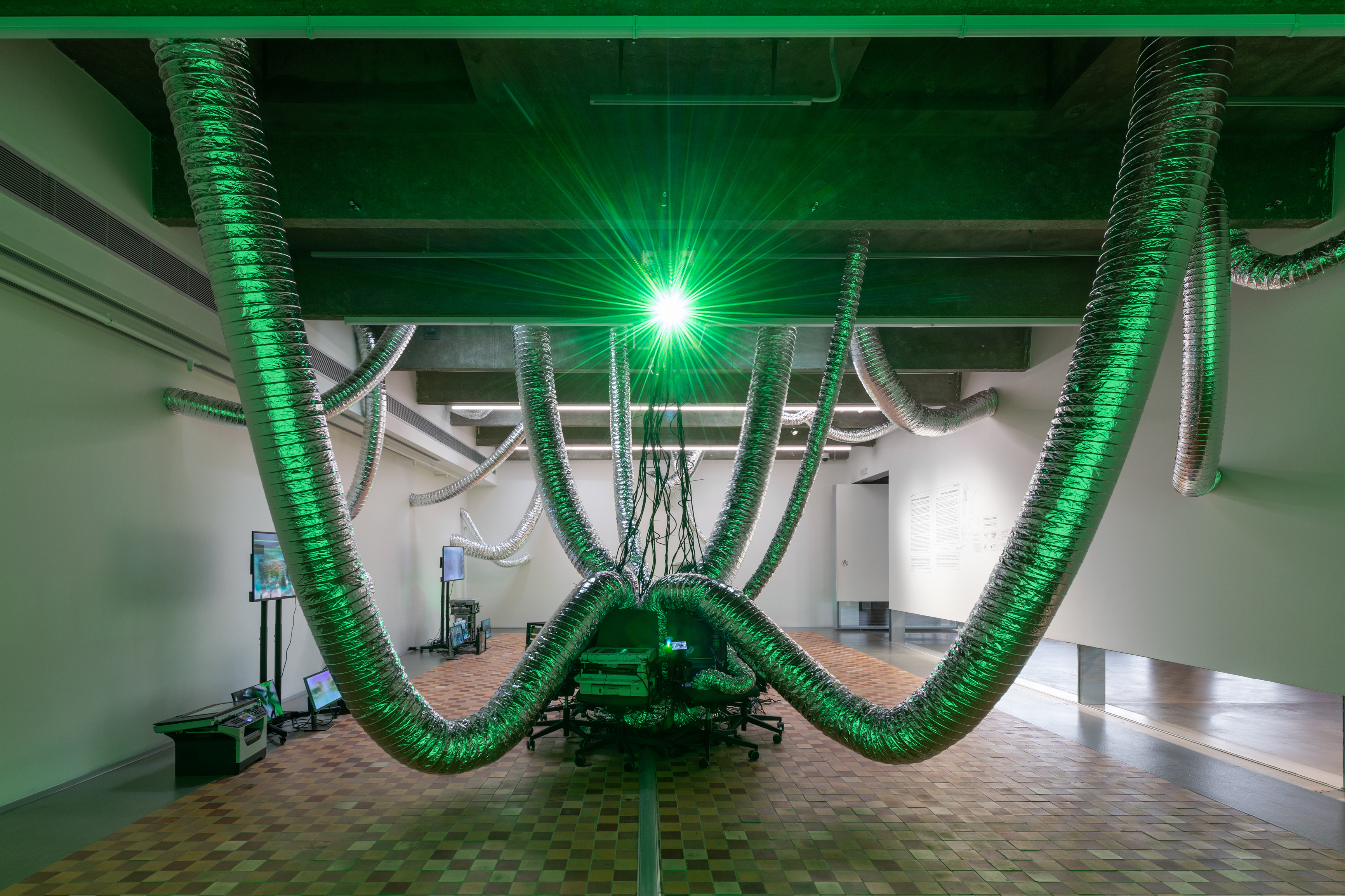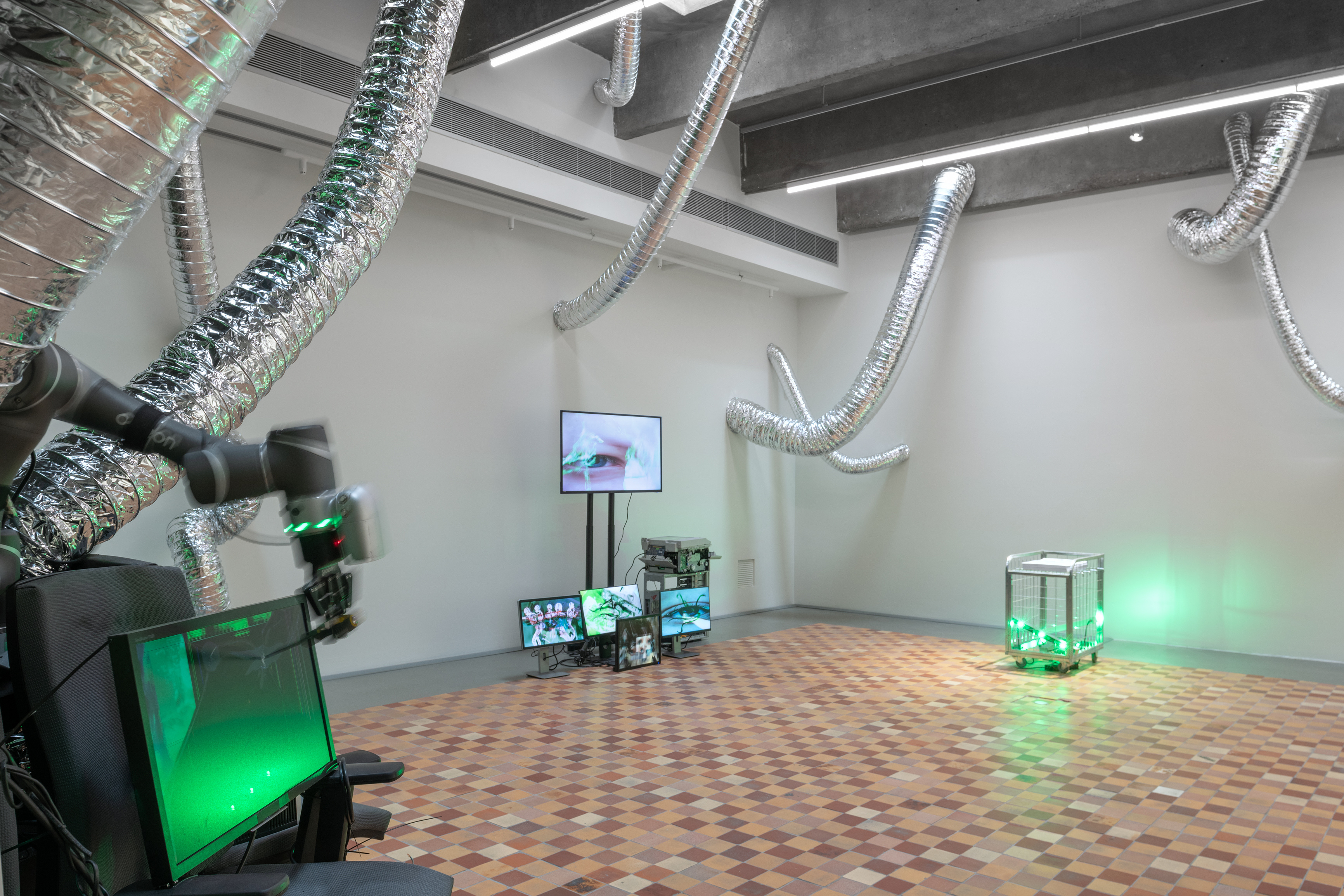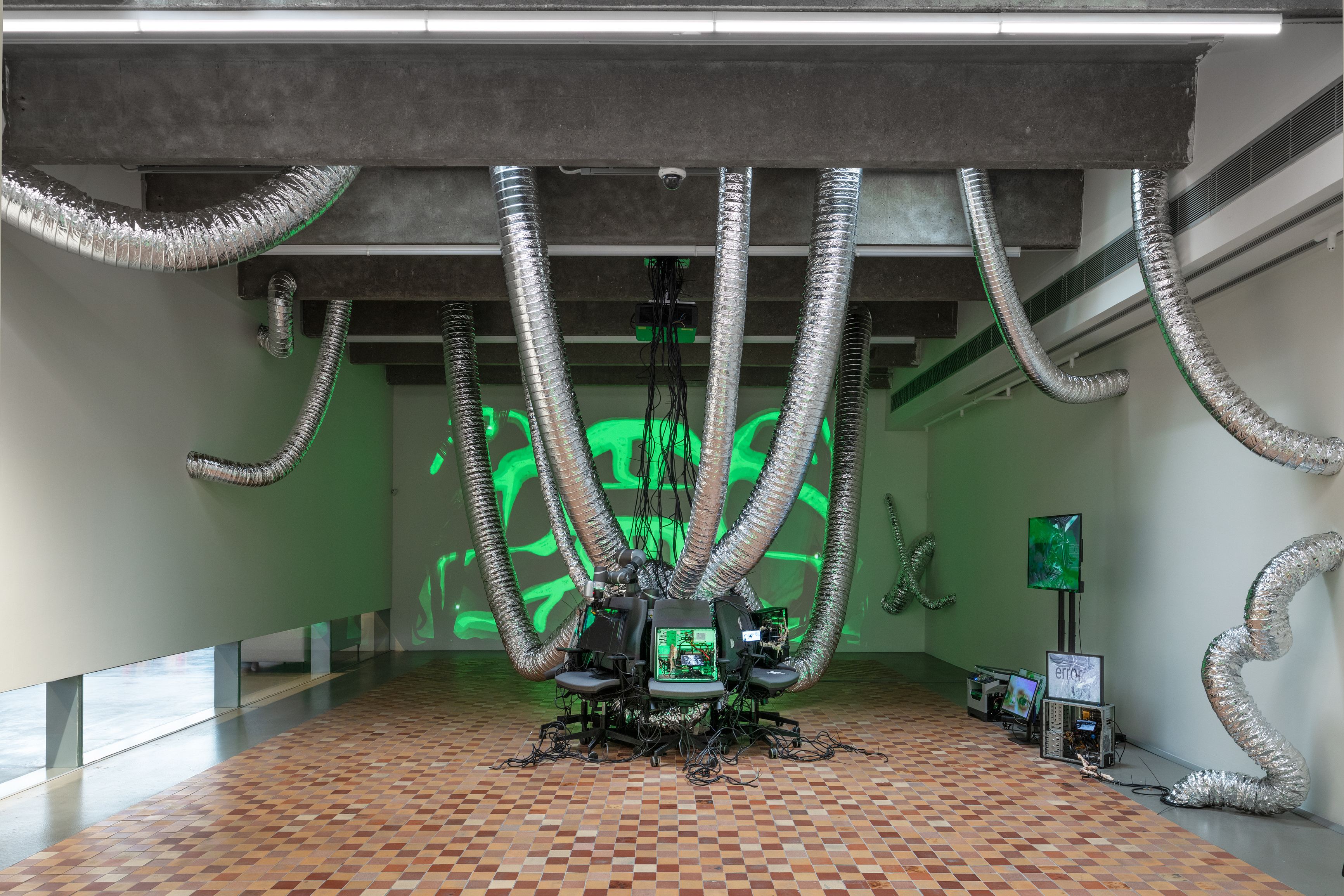 Центральный объект инсталляции «Практическая независимость», расположенной в галерее «Скайлайт», собран из офисных кресел и техники, хранящейся на складе Музея «Гараж». На смартфонах, мониторах и проекции на стене транслируется видео, отсылающее к найденным в архиве материалам, методам цифрового производства и непосредственно к архитектуре инсталляции.
